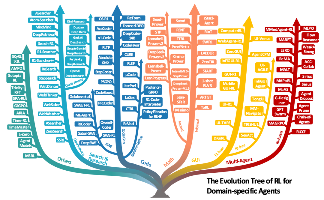 Agentic RL 也在横向拓展应用边界,涌现出多种智能体雏形: