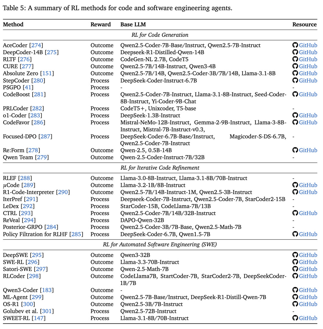 代码:将编译错误与单元测试结果用作奖励,推动智能体能力从一次性代码生成进化到自动调试以及自动化软件工程流程;