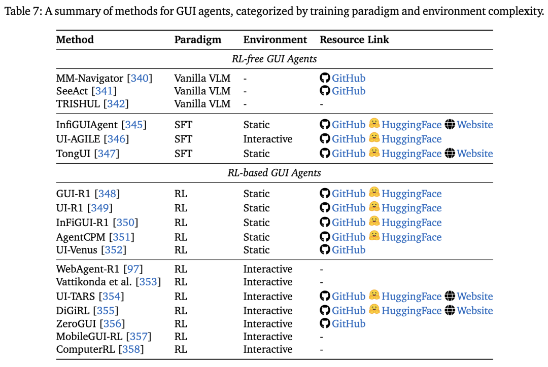Agentic RL 的发展离不开可复用的实验环境与工具链。现有工作已涵盖网页、GUI、代码、游戏等多种开源平台,并配套了相应的评测基准与框架,为研究者提供了开展实验和对比的基础设施。