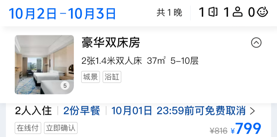 非常完美的套餐,消费券能用、国庆不加价、含早送自助晚餐、还能享受会员待遇。券后739,比之前美团大促还便宜。