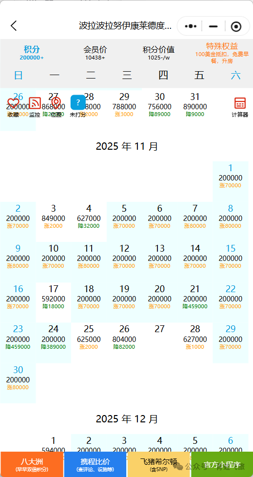 马代华尔道夫已经从20万涨到25万分,而且放出积分房的日期很少,大部分都动态积分。