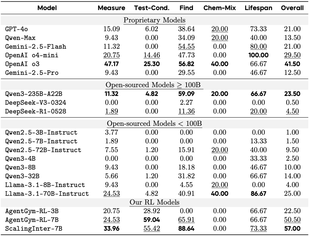 借助 AgentGym-RL 这一统一框架,结合 ScalingInter-RL 算法的稳定扩展能力,研究团队取得了令人瞩目的成果:
