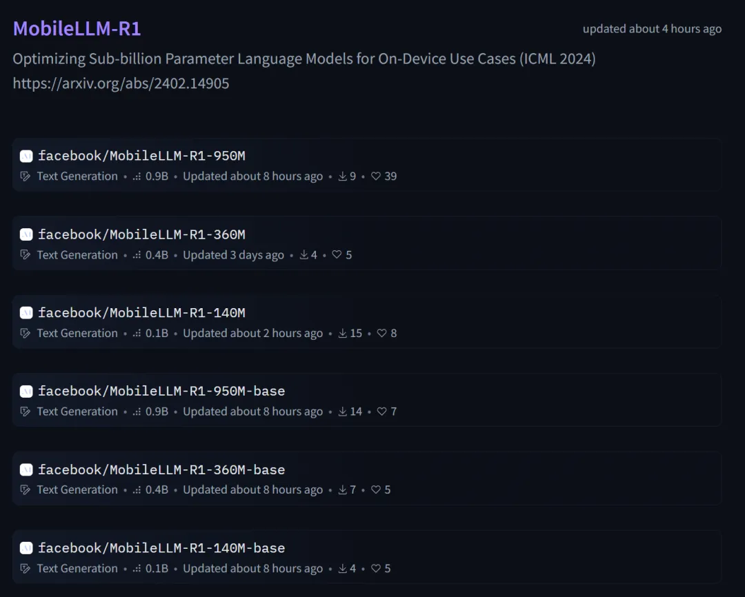 本周五,Meta AI 团队正式发布了 MobileLLM-R1。