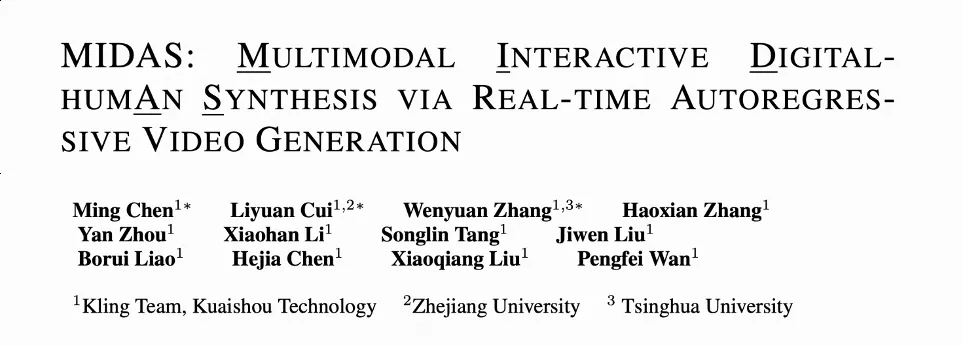 论文标题:MIDAS: Multimodal Interactive Digital-humAn Synthesis via Real-time Autoregressive Video Generation