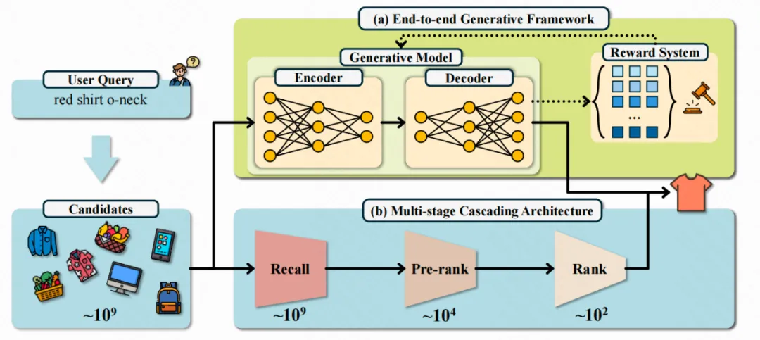 为解决传统电商搜索系统面临的诸多挑战,工业界通常采用级联式架构,以实现较高的商业效益和系统稳定性。然而,随着大语言模型的兴起,研究者开始探索如何借助其强大的语义理解与世界知识进一步优化搜索体验。