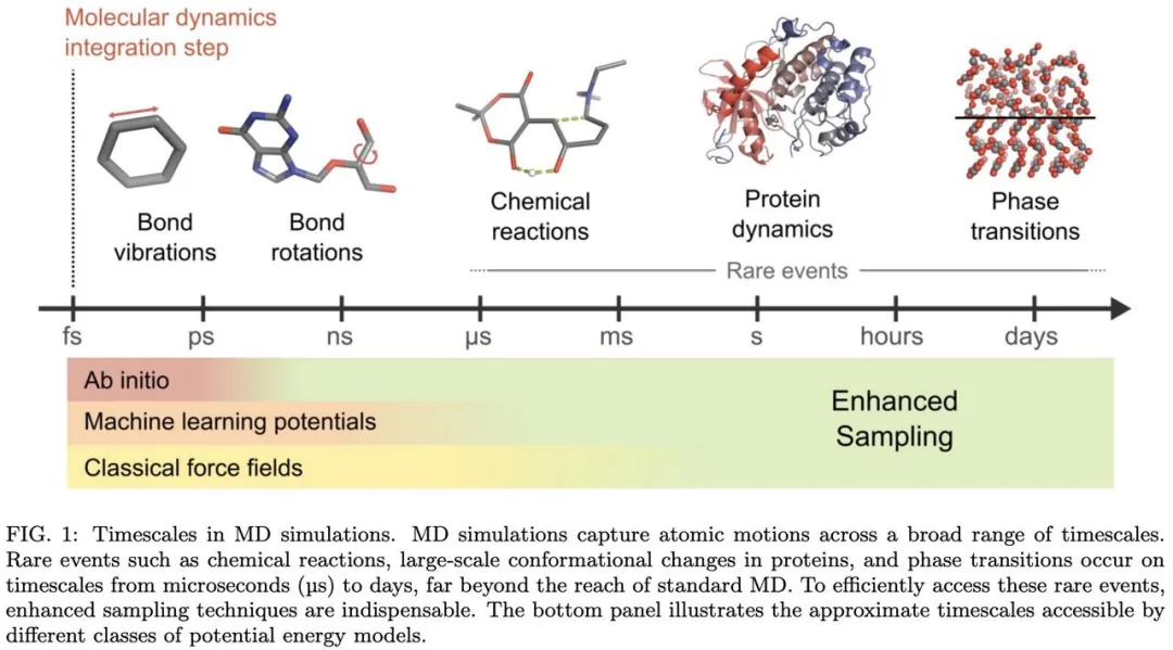 然而,传统的 MD 方法因为模拟的时间尺度有限,其有效性常受限于稀有事件相关的长时间尺度问题。为应对该挑战,增强采样方法应运而生,近年来更是与机器学习技术日益深度融合。