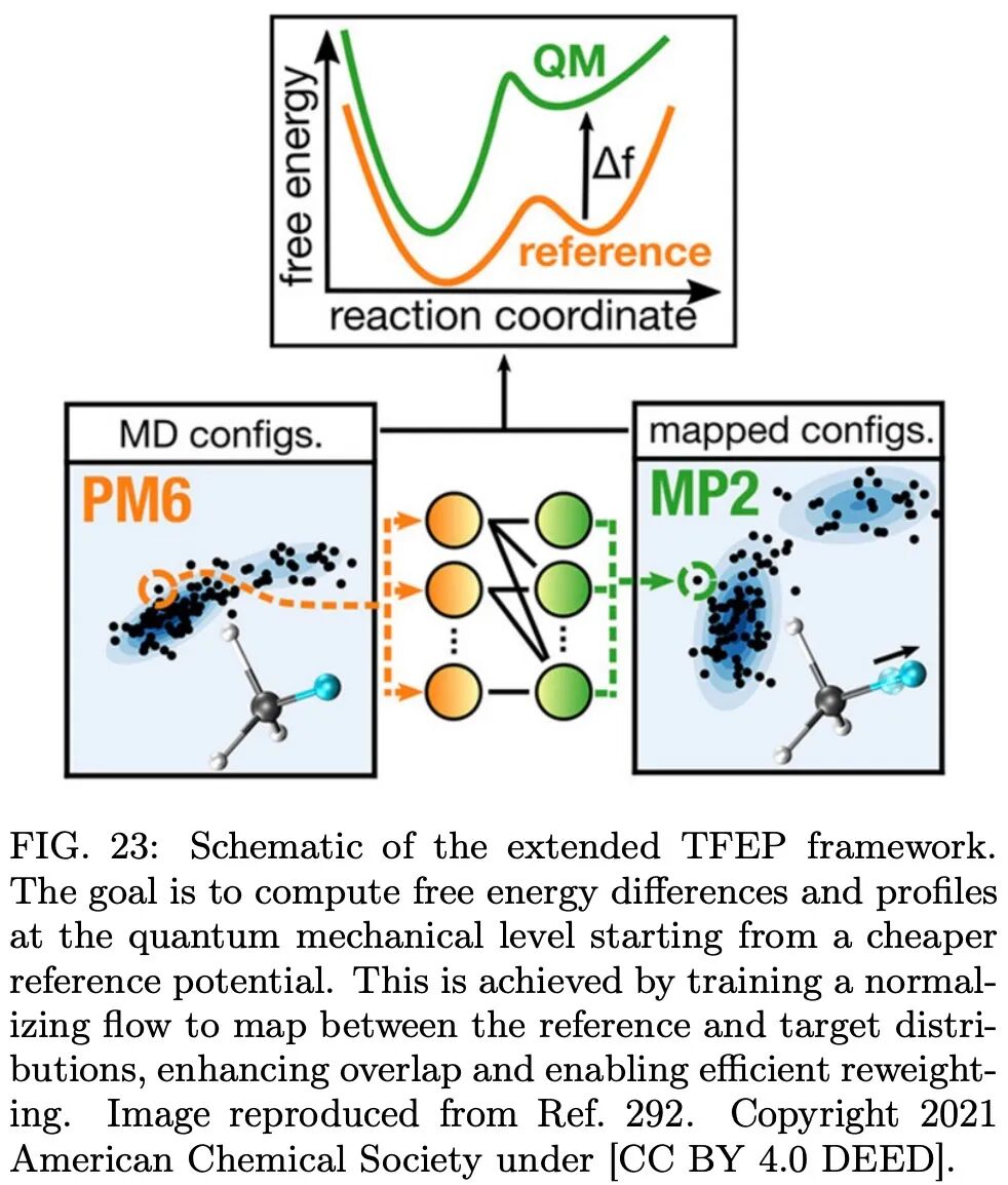 一些颇具前景的新方法正崭露头角,例如完全用机器学习算法取代偏置方案,甚至用生成模型替代传统采样。但这些研究仍处于萌芽阶段,尽管前景可观,新方法在成为通用解决方案之前仍面临重大障碍,尤其对于具有大量自由度(如溶剂分子)的大型真实体系。