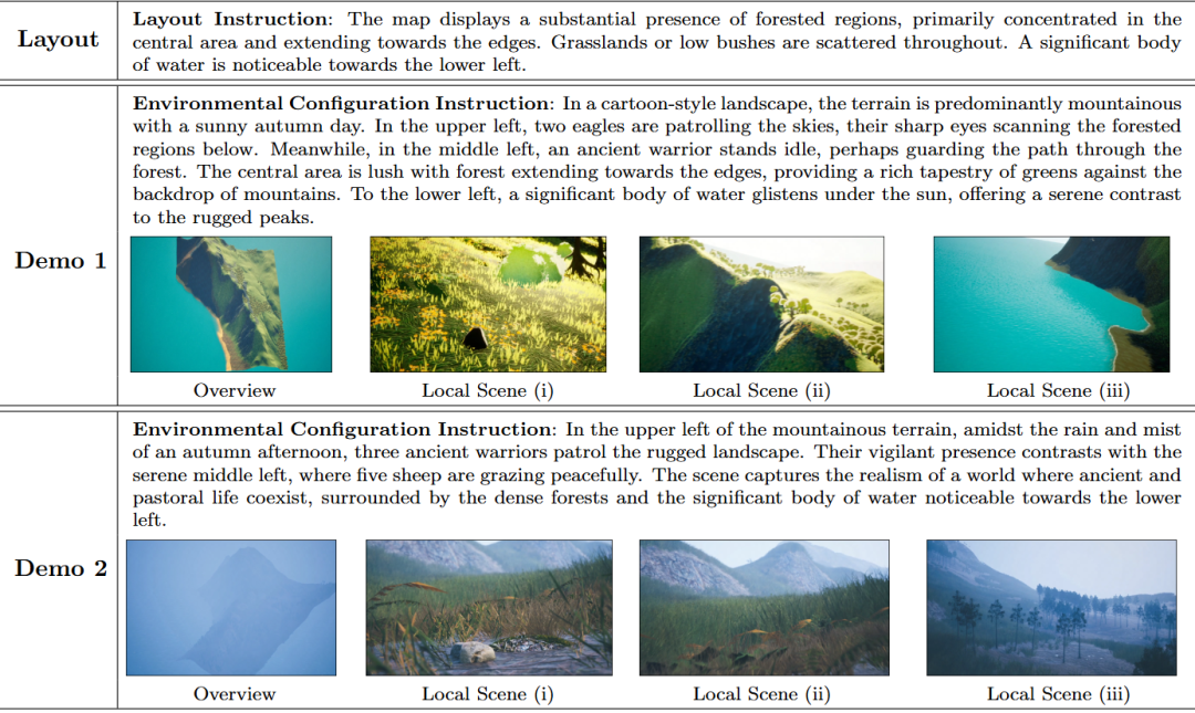 3. **程序化渲染管线模块:** 将符号化场景布局和JSON格式的环境配置解码转译,将其转换为UE5等渲染引擎可理解的输入形式,最终生成可交互、可定制化的3D虚拟世界。