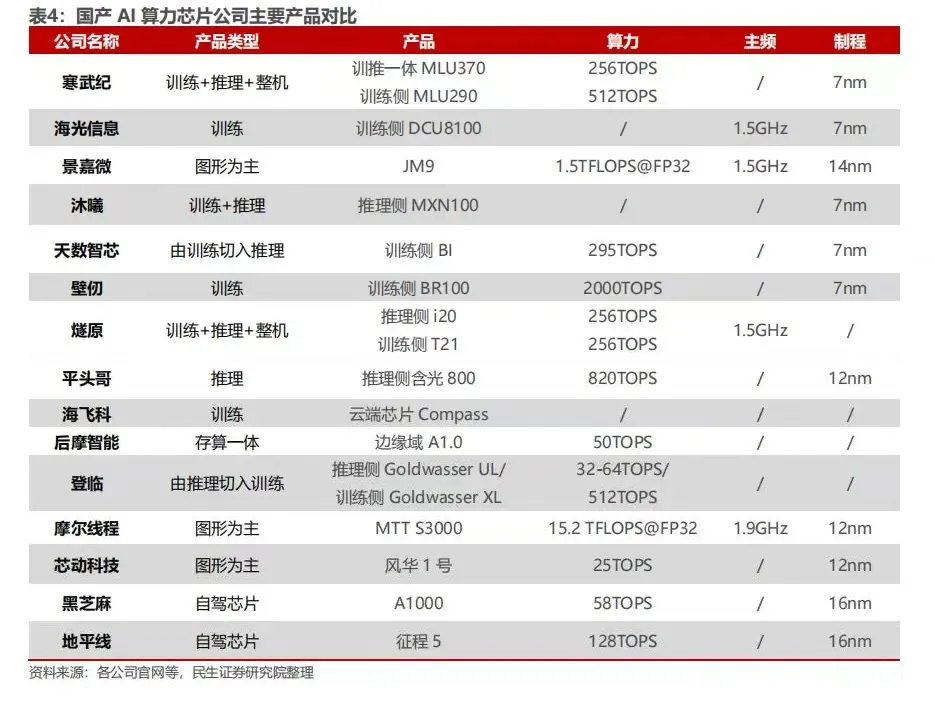 天数智芯主打通用GPU芯片,其产品包括训练和推理加速卡。公司推出全自研的"洪"系列芯片,支持FP32、FP16、BF16等多种计算精度,针对AI训练和推理场景进行优化。天数智芯的 Big Island 云端 GPGPU 是一款具有自主知识产权、自研 IP 架构的 7nm 通用云端训练芯片,这款芯片达到 295TOPSINT8 算力。