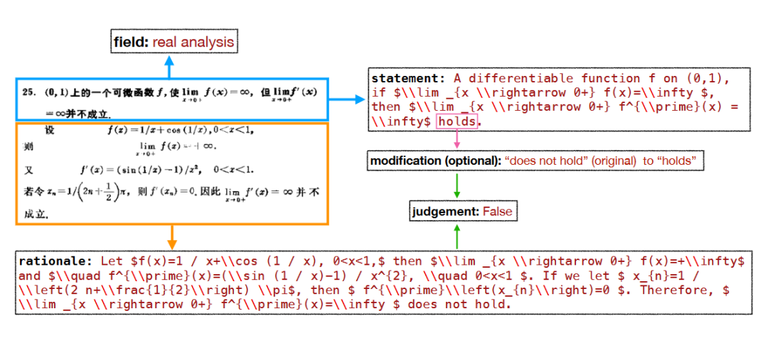 ▲ 图3 COUNTERMATH 中的一个数据示例,该数据来源于《实分析中的反例》