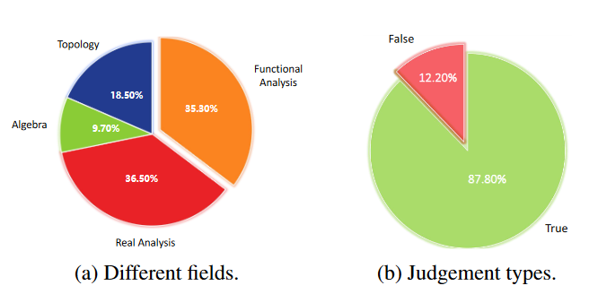 我们观察到,大多数语句都被标注为 True。这可能是因为数据来源于数学教材,其中大多数语句用语正确,以避免误导读者,特别是数学新手。
