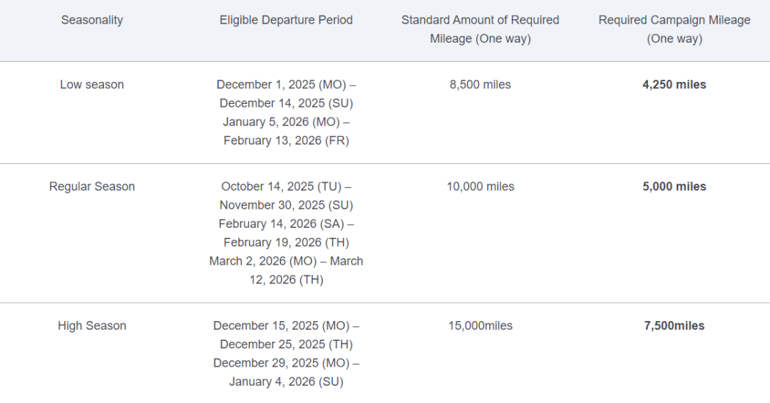 其次是全日空的5折里程兑换活动,兑换时间截至2025年9月30日。该活动针对指定出行日期(包括2025年10月14日-12月25日、12月29日-2026年2月19日、2026年3月2日-3月12日)和指定的经济舱航线,提供5折兑换优惠。主要涉及中日往返航线,如上海浦东-羽田/成田/关西、北京-羽田/关西等。淡季单程最低仅需4250里程,常规单程5000里程,覆盖部分春节假期。需要注意的是,上海浦东-羽田的NH971/NH972航班不适用此优惠。文章强调这些都是限时活动,提醒读者关注并及时兑换。