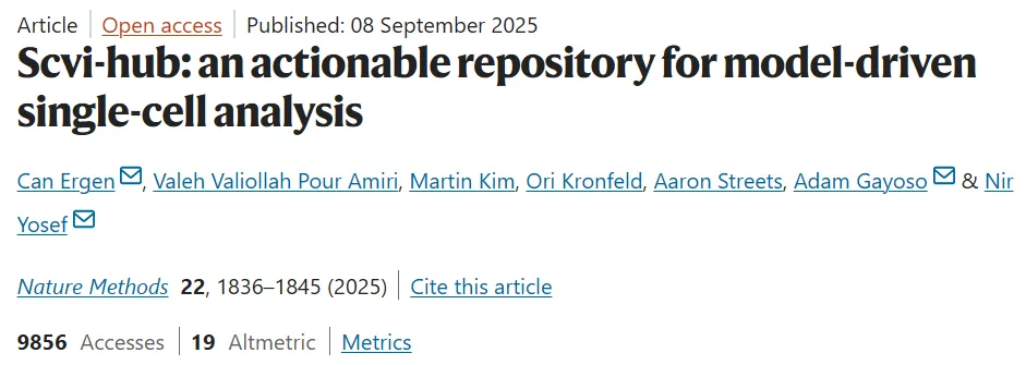 该成果以「Scvi-hub: an actionable repository for model-driven single-cell analysis」为题,于 2025 年 9 月 8 日发布在《Nature Methods》。