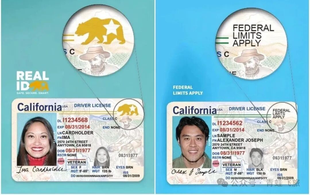 驾照也分两种,新推出的版本的叫Real ID,坐美国国内航班或者出入联邦设施理论上会查验Real ID(小蛙觉得特朗普会加大力度推行)。外国人NRA申请Real ID需要工卡、绿卡+ssn,但是实际上执行的并不严格,带有Real ID的驾照右上角会有五角星。驾照主要是证明身份用,小蛙觉得不强求Real ID。下图左为Real ID版驾照,右为普通驾照。