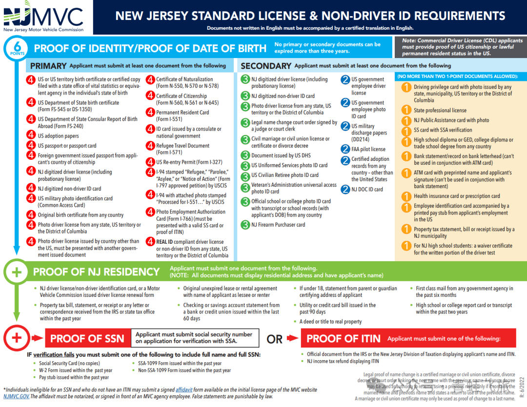 具体的材料以官方说法为准,最好预约的时候去官方网站确认一下。这里拿新泽西举例子,需要准备的材料如下:
