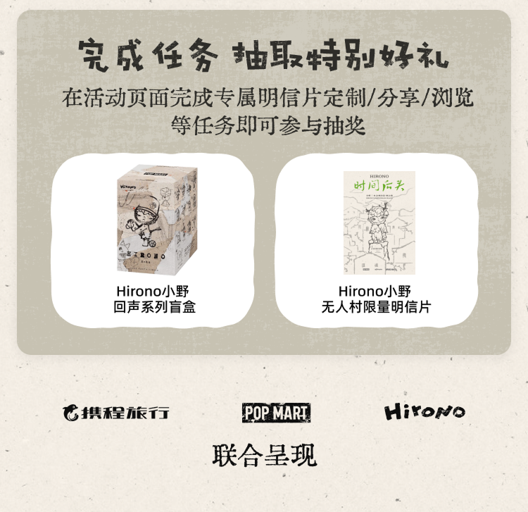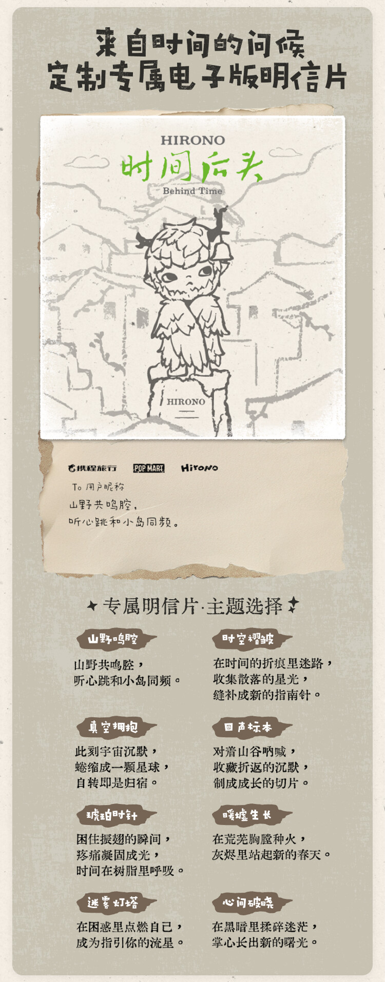 不仅传递心意,更有机会赢取 Hirono回声系列盲盒、无人村限量明信片等惊喜福利。