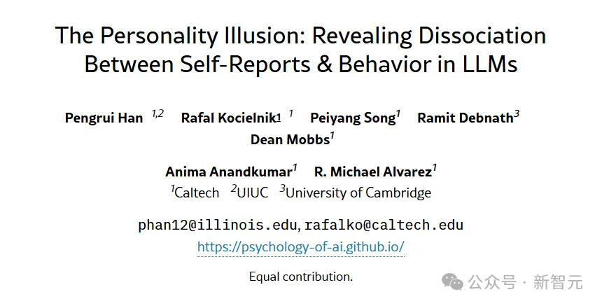 原文标题:醒醒,LLM根本没有性格!加州理工华人揭开AI人格幻觉真相