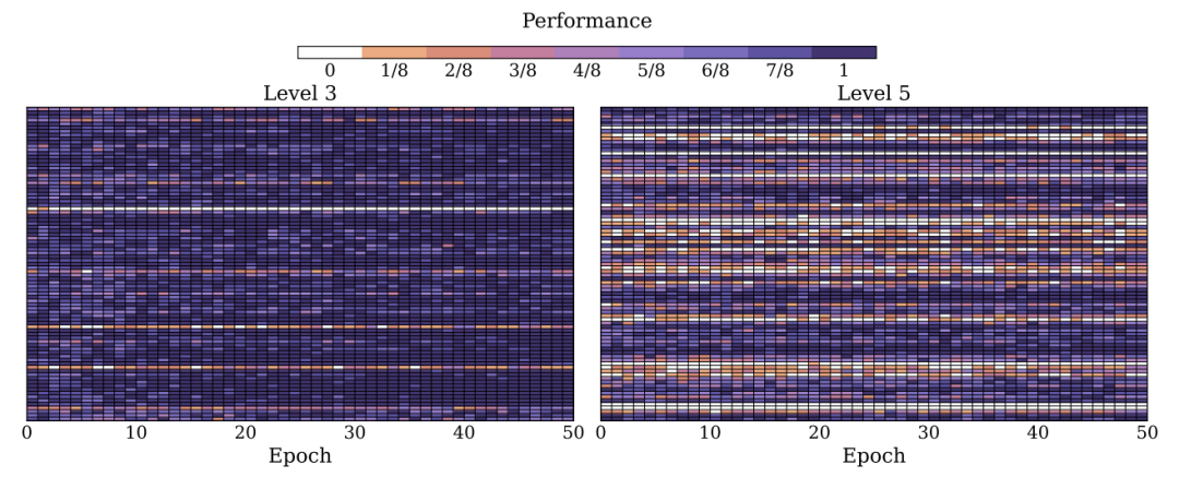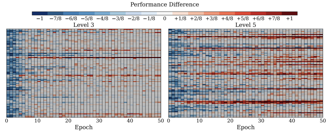 利用能力:HPT解决了更多难题(见表4红色数字),且没有遗忘已学会的题目(绿色数字稳定)。