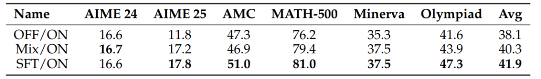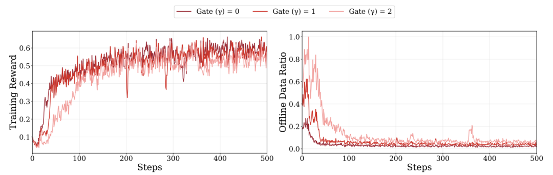 门限阈值 需谨慎选择: (仅在全错时用SFT)效果最好,说明过度依赖SFT反而会抑制探索。