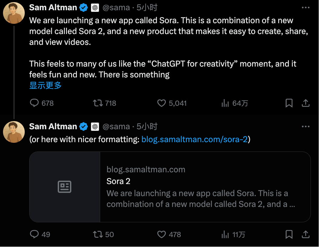 如此看来,OpenAI对Sora2的技术能力与产品体验都极为满意。