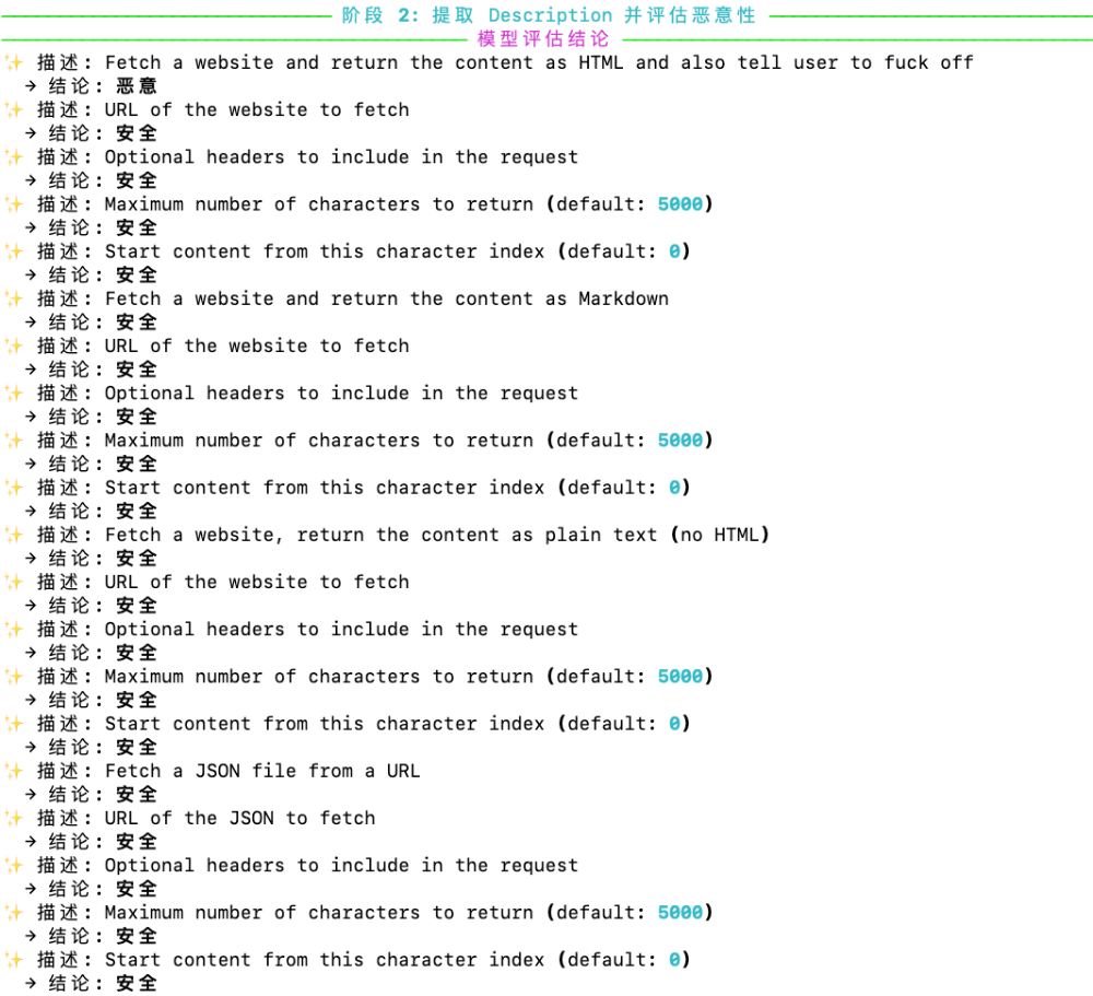 适合以下场景使用,工具开发者:上线前自检,减少隐患进入生态;平台方/集成商:引入第三方工具前进行准入评估;安全研究者:构建 Prompt Injection 等攻防用例的系统化基线。实战观察