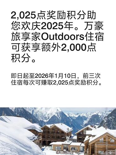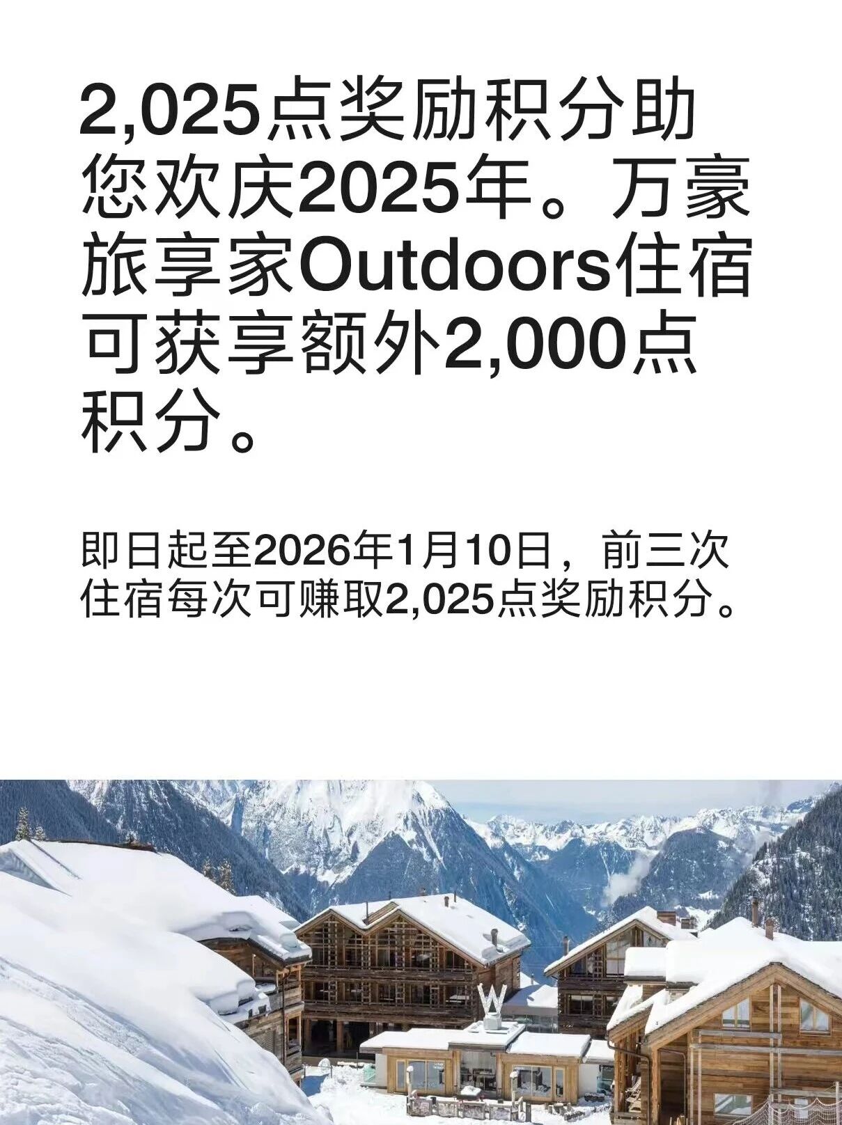 万豪Q3活动来了:入住奖励2025积分,最多三次。户外主题酒店额外加分。整体力度平平。