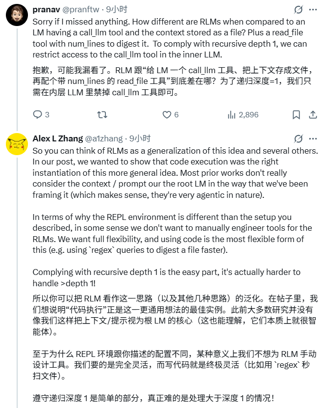 博客文章:https://alexzhang13.github.io/blog/2025/rlm/