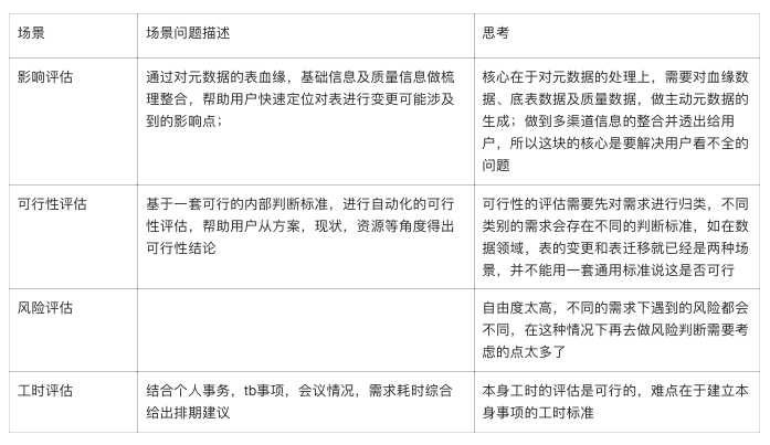 需求评估:通过对影响面-可行性-风险-成本(工时)的智能评估,助力数据同学快速获得评估结果,减少前期的过多投入。