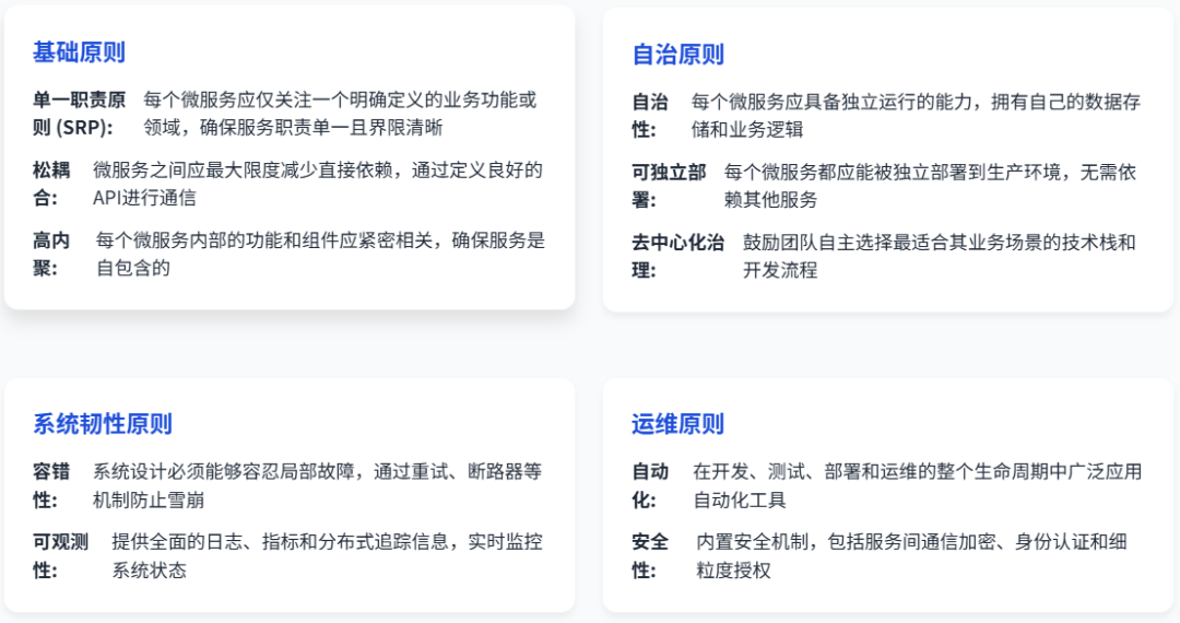 微服务架构的设计并非简单的技术选型,而是一套完整的系统哲学和设计原则的体现。这些原则共同作用,旨在构建一个健壮、可扩展且能持续演进的系统。