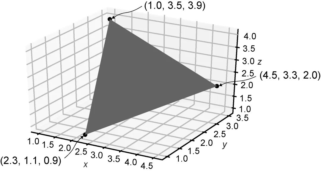 triangle = [(2.3,1.1,0.9), (4.5,3.3,2.0), (1.0,3.5,3.9)]