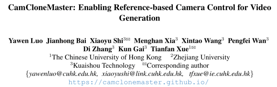 原文标题:SIGGRAPH Asia 2025|电影级运镜一键克隆!港中文&快手可灵团队发布CamCloneMaster