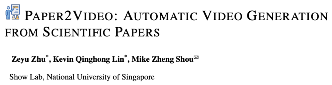 项目主页:https://showlab.github.io/Paper2Video/