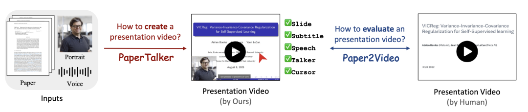 Paper2Video基准与PaperTalker框架实现学术视频自动化生成,攻克长文档与多模态挑战,提升科研交流效率与质量。