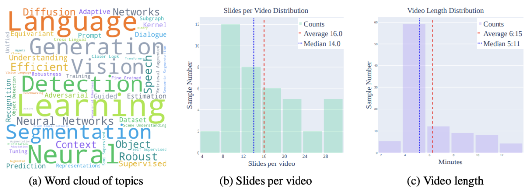 图 2: Paper2Video 基准统计概览