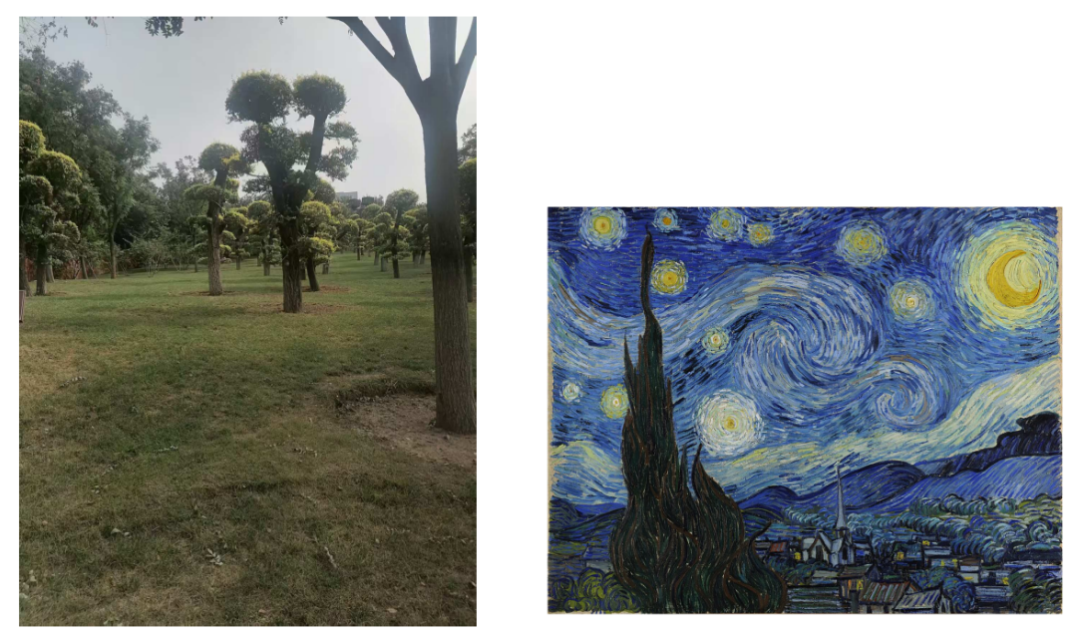 看起来,这类换背景的任务已经难不倒 DreamOmni2 了。既然如此,我们上难度,尝试让模型将一张照片的风格转换为另一种风格。这类任务对模型的理解力与生成控制力要求更高:它不仅需要识别画面内容,还要掌握风格的语义特征,如色彩氛围、笔触质感等。