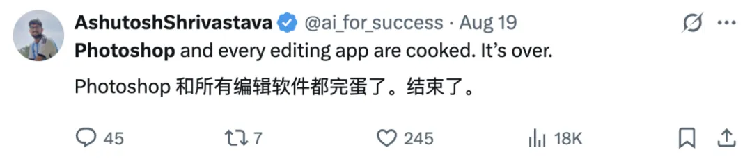 「Photoshop is dead」,已经成为最近 AI 创作者圈中讨论最热的话题之一。