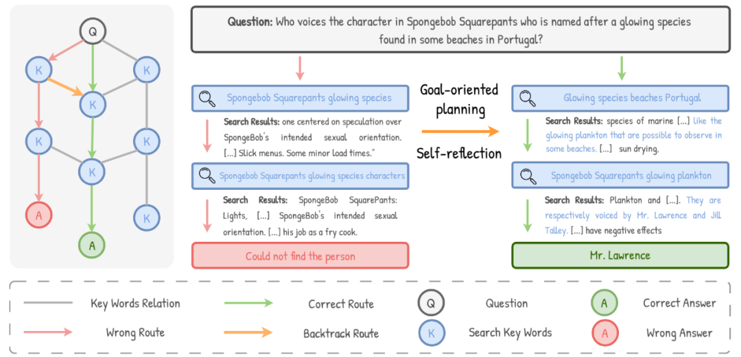 直观理解:如图 3 所示,把检索看作在「关键词图」上行走。一次小小的关键词变化,可能让智能体走进另一条支路;若后续优化都围绕这条错误分支展开,越走越偏,难以回到正确答案。强模型(如 GPT-4o)有时能「自救」,但更普遍、可落地的方式,是让模型从一开始就「立目标」,并在每一步都「照镜子」。
