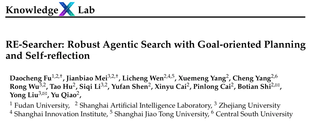 论文标题:RE-Searcher: Robust Agentic Search with Goal-oriented Planning and Self-reflection