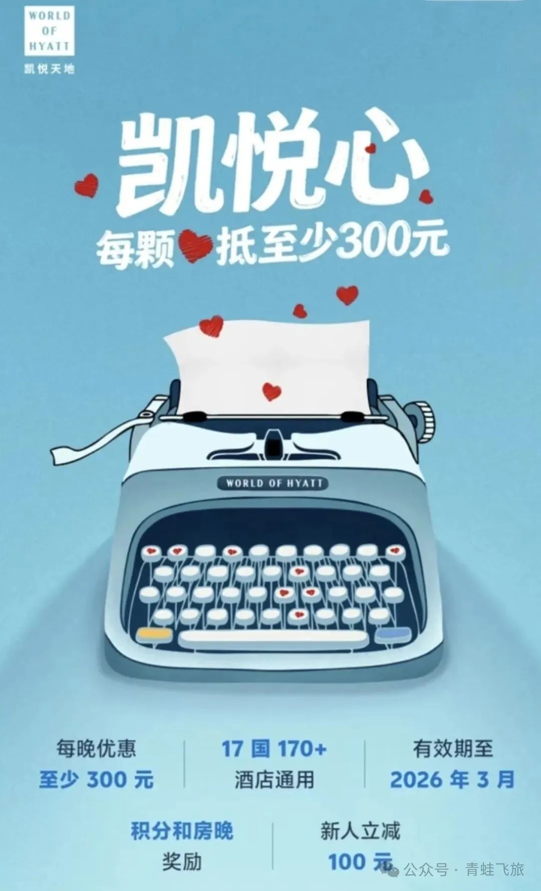 凯悦心活动上线:每颗100元抵扣300元住宿,今年新增积分+房晚奖励!境外使用奖更丰厚。高性价比,助你快速保级。