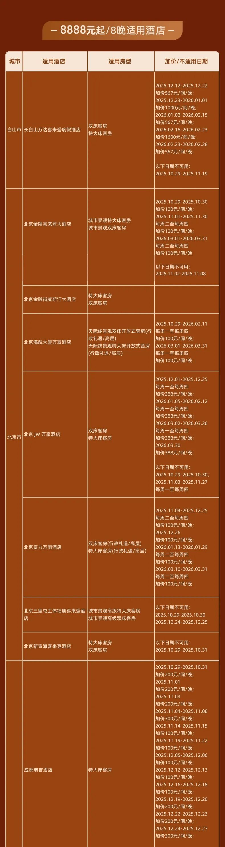 万豪白金套餐 10月27日9:00开售