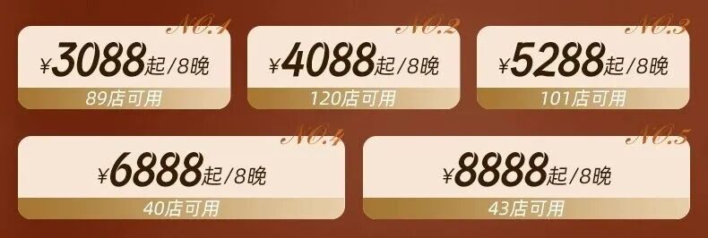 · 8晚套餐:购买指定白挑套餐:3088/4088/5288/6888/8888元