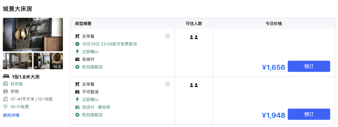首先,我们来看看用凯悦心价具体有多划算,不仅大幅度低于会员价,跟其他OTA平台相比,更是骨折价!