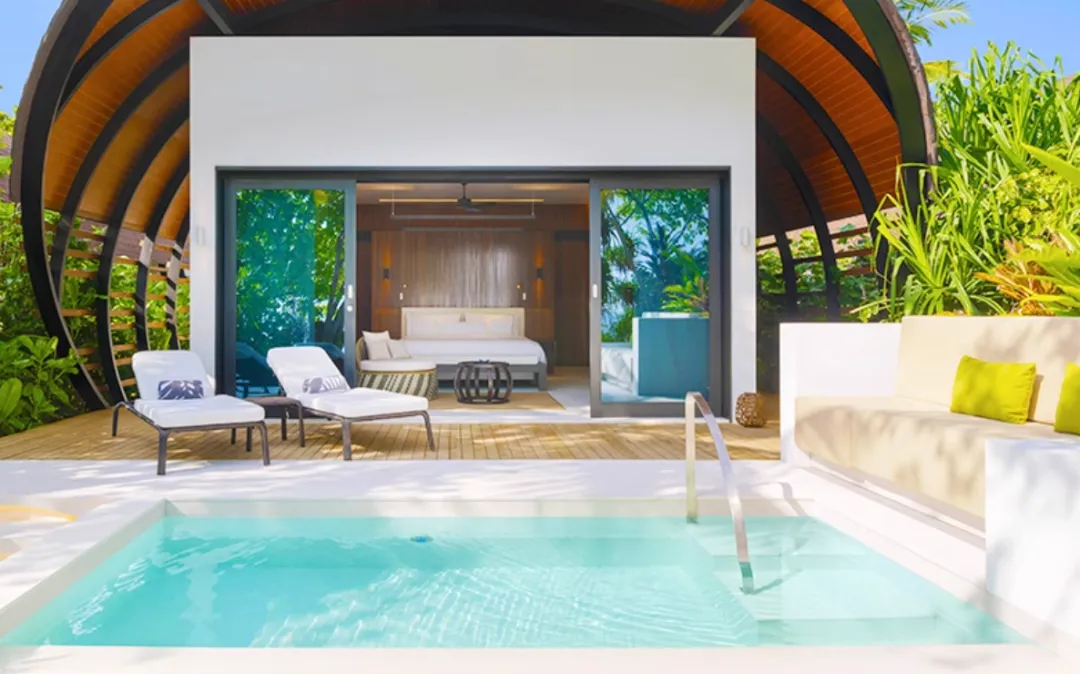 六星岛,马尔代夫瑞喜敦迪古拉岛是立鼎世旗下,坐落在世界最大最深的卡夫阿里环礁内,岛上拥有94座私人别墅,现代设计与马尔代夫风情相结合。