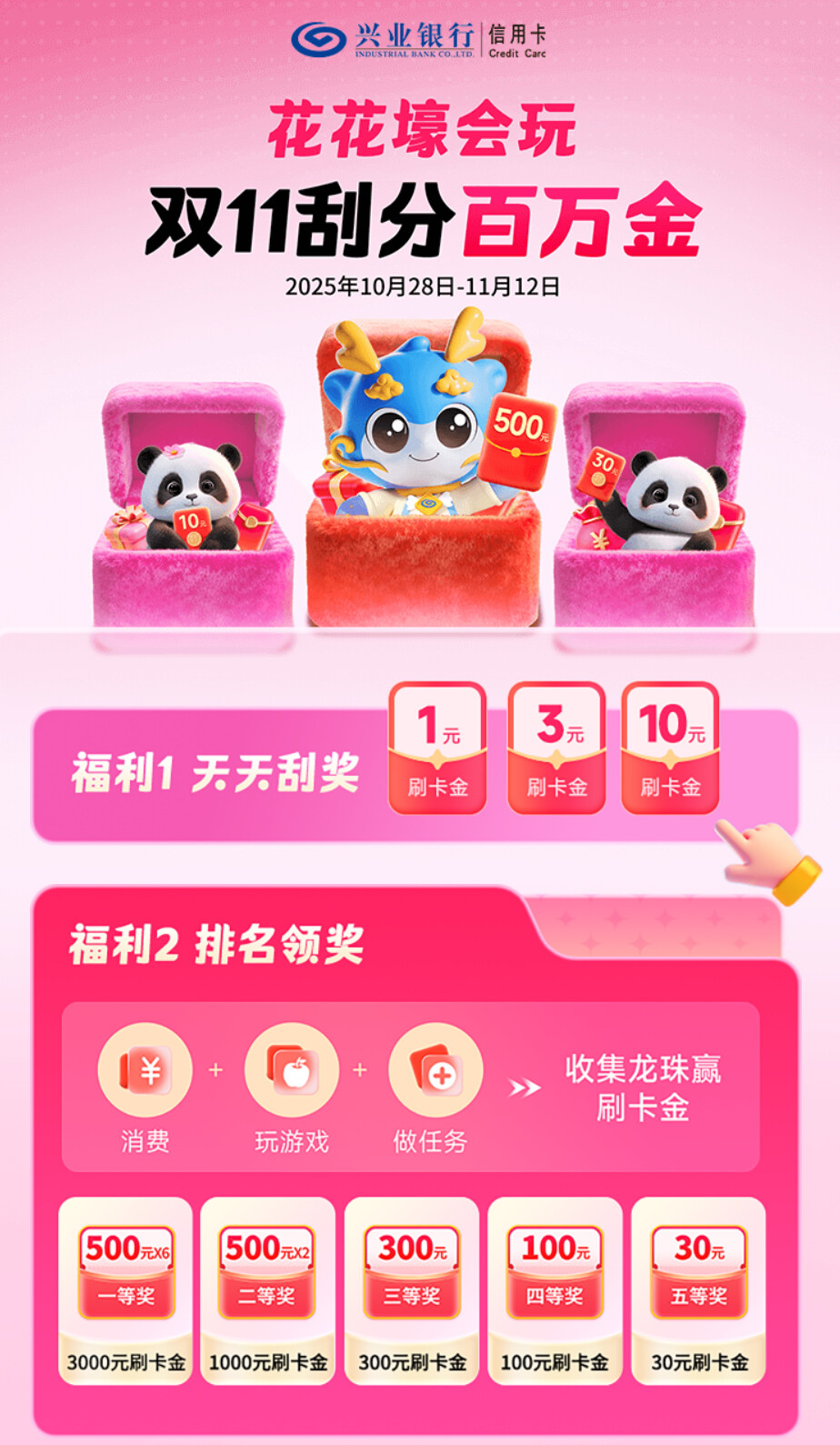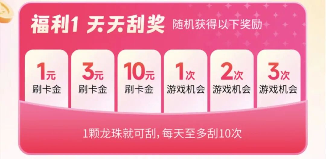 奖励:1-10元随机刷卡金,或额外游戏次数(通过游戏可再得龙珠)。