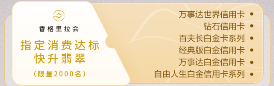 招行高端卡一笔消费领香格里拉翡翠会籍
