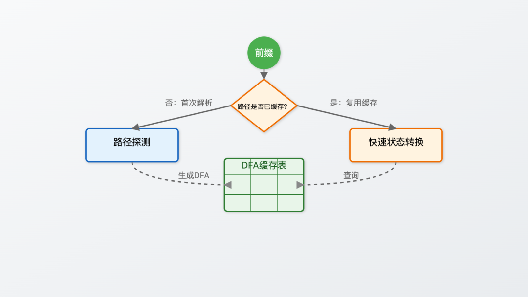 在编译链路上,我们将原本自研的自动语法分析器更换成了生态和性能更好的 Antlr4。Antlr4基于ALL算法实现,能够自动将探测过的路径缓存成 DFA 状态机,缓存到表中,下次碰到相同前缀就直接查表。第二次再走过这个路径时,性能就逼近手写状态机。缺点就是第一次走解析路径时性能会较差,不过我们在类初始化时会对常见路径进行一次初始化,保证第一次运行时,性能也是可接受的。