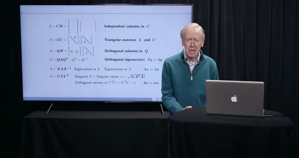 斯特朗教过微积分、数学分析、计算科学和工程(18.085)课程。但正是他的线性代数课演变成了一门最终由麻省理工学院三分之一的学生选修学习的大课。