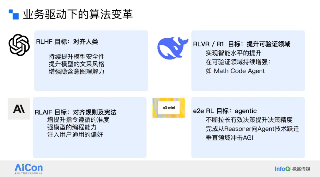 本文整理自阿里巴巴算法专家曹宇今年 6 月 在 AICon 2025 北京站的分享 《强化学习 AI 系统的设计实现及未来发展》。其分享从传统的 RLHF 系统开始,结合算法实践展示出 RL 系统的现状及发展脉络。通过具体的实践,与从业者共同探讨未来超大规模 RL 的发展方向,分享内容既包括理论基础,也包含业界实践,最后开源生态及社区共建也会涉及。