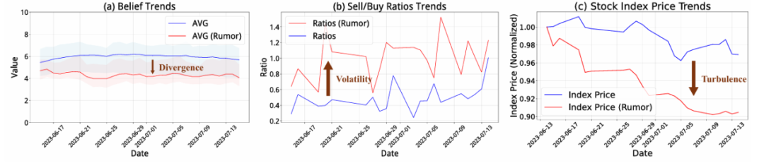 - 通过注入不同类型的虚假信息,研究情绪在市场中的传染路径。