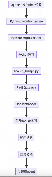 改造传统 JSON + 组装调用方式,基于Py4j,实现" Code+泛化调用 "机制,显著提升工具调用的灵活性和执行效率;